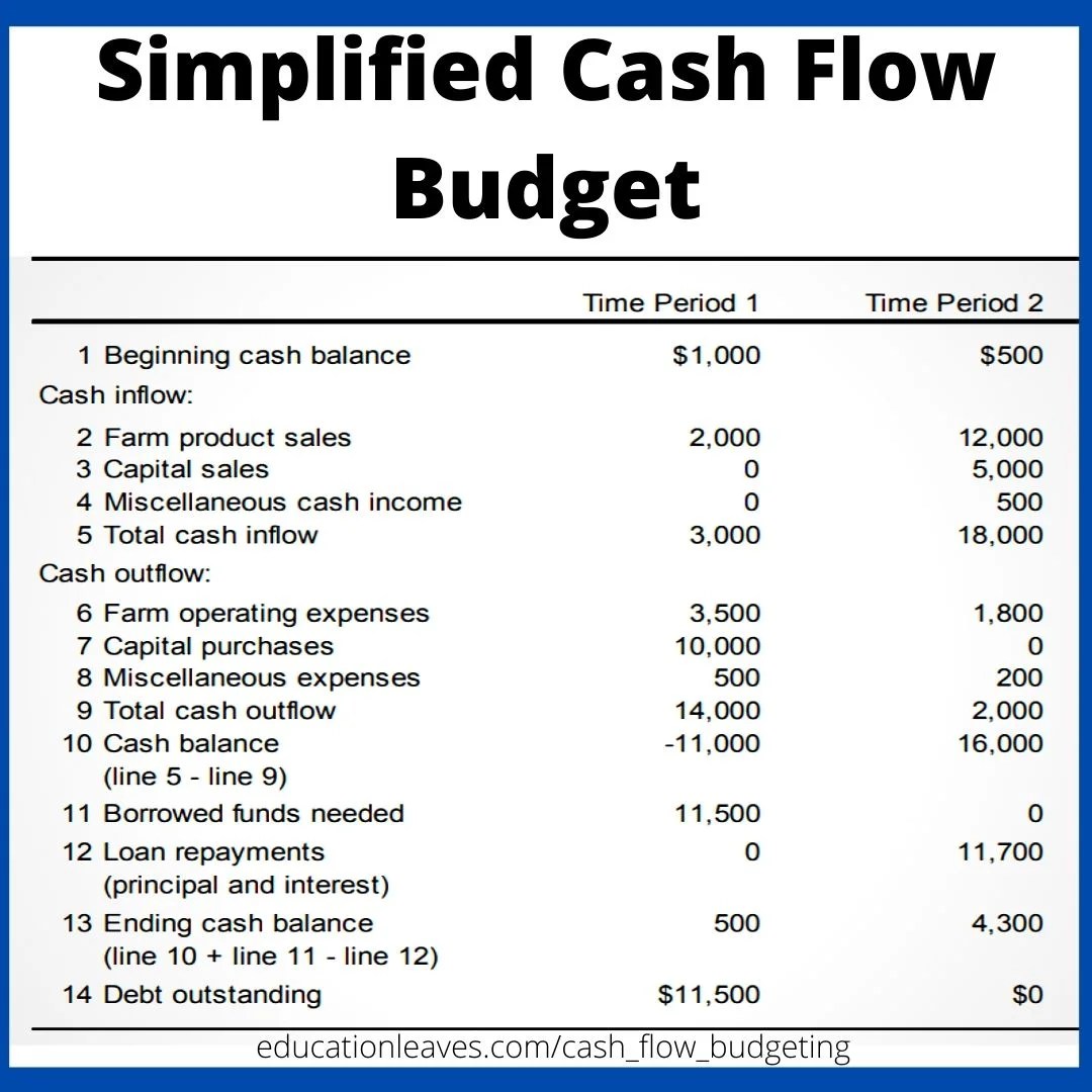 Budgeting Cash Flow. Before you can build a cash flow budget, you will need to track your income, resources, and expenses for at least one month. But understanding what cash flow is and how to manage it properly can help simplify the process. The cash flow budget is a plan of how cash will be coming into the operation (cash inflows) and leaving the operation (cash outflows). A cash flow budget is a budget that provides an overview of cash inflows and outflows during a specified period of time. When a crisis event first hits your business, an important step is to develop or revise your budget.