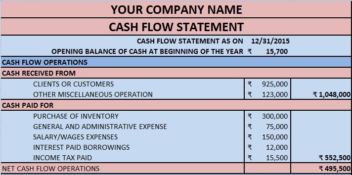 This cash flow statement template provides you with a foundation to record operating, investing, and financing cash flows annually. Cash flow is the incoming and outgoing of cash, representing the operating activities of an association. A company has business production & sale of calculators. Sparklines, conditional formatting and crisp design make this both useful and gorgeous. Make sure you tell it where to go!